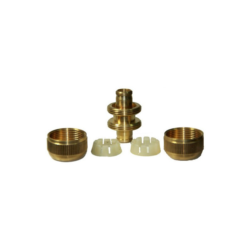 Racor Barcelona para la unión de dos mangueras fabricado en latón.