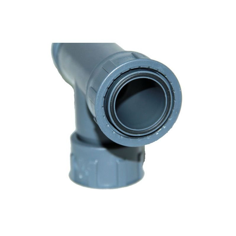 Te de PVC ,montaje rápido sin herramientas ni elementos de estanqueidad, con una presión nominal de 12 BAR, uniones reforzadas con juntas de goma anti-fugas.